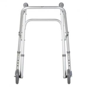O recurso é fabricado em alumínio, conferindo-lhe leveza e resistência. O andador conta com duas rodas dianteiras para facilitar o deslocamento, possibilitando que o usuário empurre o dispositivo sem retirá-lo totalmente do chão, gerando menor esforço durante a caminhada. Possui ponteiras traseiras que proporcionam segurança na locomoção e auxílio ao parar a caminhada. Os apoios de mão são macios, produzidos sem o uso de látex, para crianças que têm sensibilidade ao material. O dispositivo possui cinco níveis de ajuste de altura, podendo ser utilizado por crianças de 1m a 1,25m, é dobrável e fácil de guardar ou transportar.