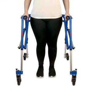 O Andador Posterior de Alumínio com 4 Rodas auxilia na locomoção e reabilitação de pessoas com dificuldades de mobilidade. O dispositivo proporciona apoio adequado e estimula uma postura ereta, contribuindo para maior independência e capacidade funcional nas atividades diárias. O uso do andador na posição posterior ajuda no senso de equilíbrio, tornando o andar mais fácil e seguro, exigindo menos esforço do que na posição anterior. Fabricado em alumínio, para maior leveza e resistência, o recurso possui apoios de mão fáceis de higienizar. O sistema de travamento nas rodas traseiras (uso na posição posterior) impede que o andador deslize para trás e as rodas dianteiras podem ser usadas fixas ou giratórias. Também pode ser utilizado com acessórios, permitindo diferentes adaptações e aumentando as possibilidades de uso